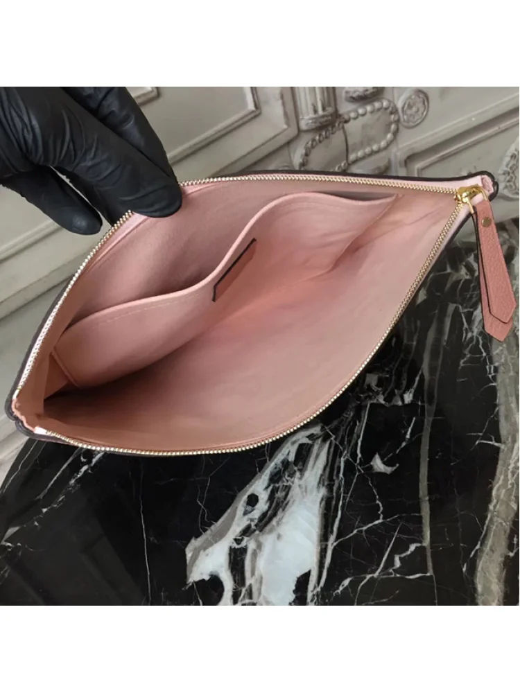 - Высокое качество материалов: Клатч изготовлен из прочного монограммного холста, что делает его долговечным и устойчивым к повреждениям.