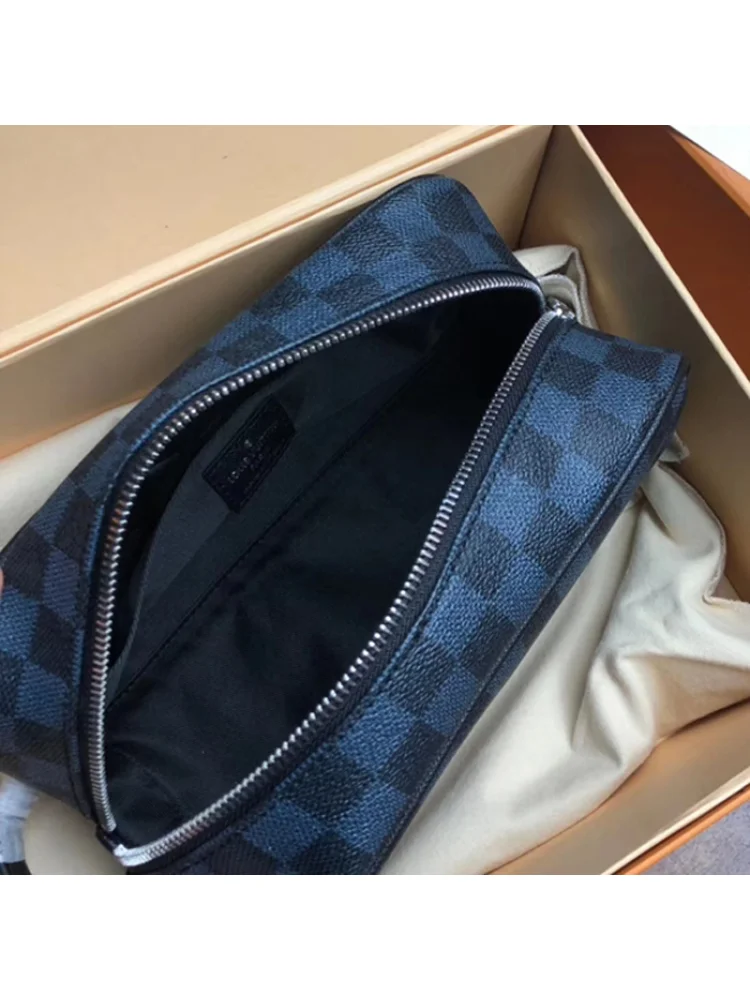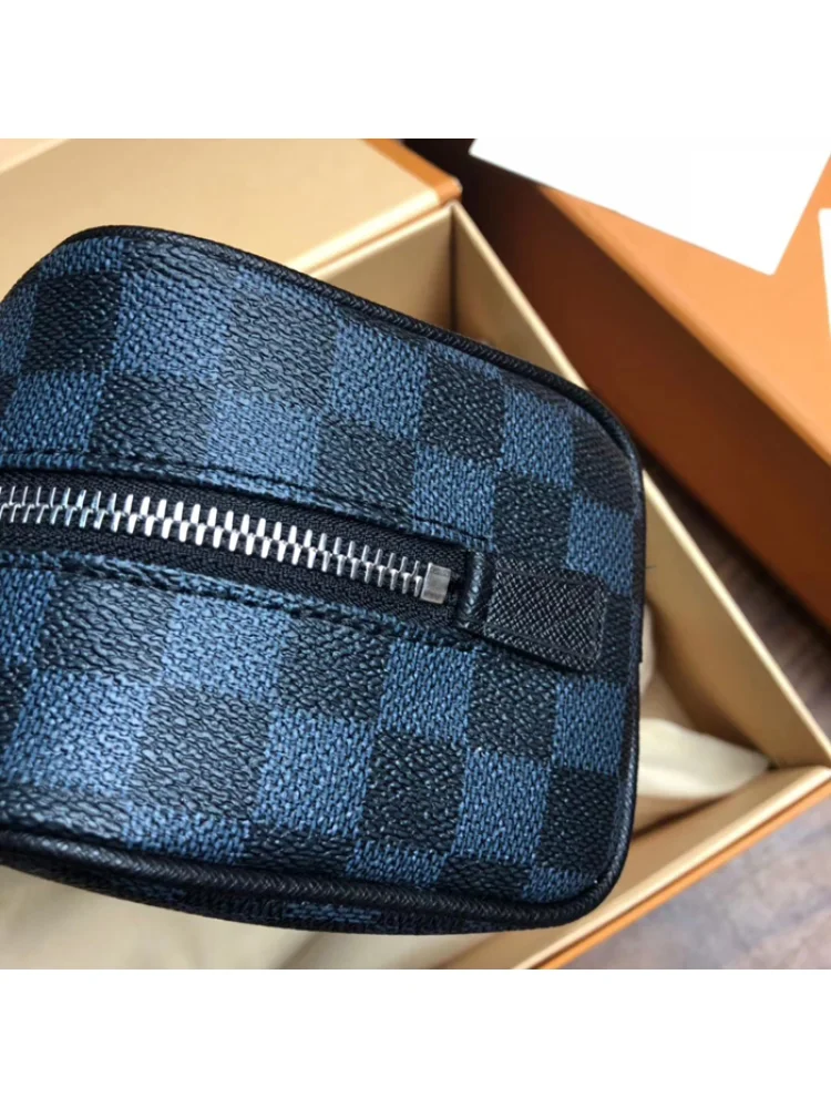 - Стильный дизайн: Оснащена знаковым узором Damier Cobalt Canvas и элегантным цветом "Navy Blue", эта косметичка станет стильным дополнением к вашему образу.