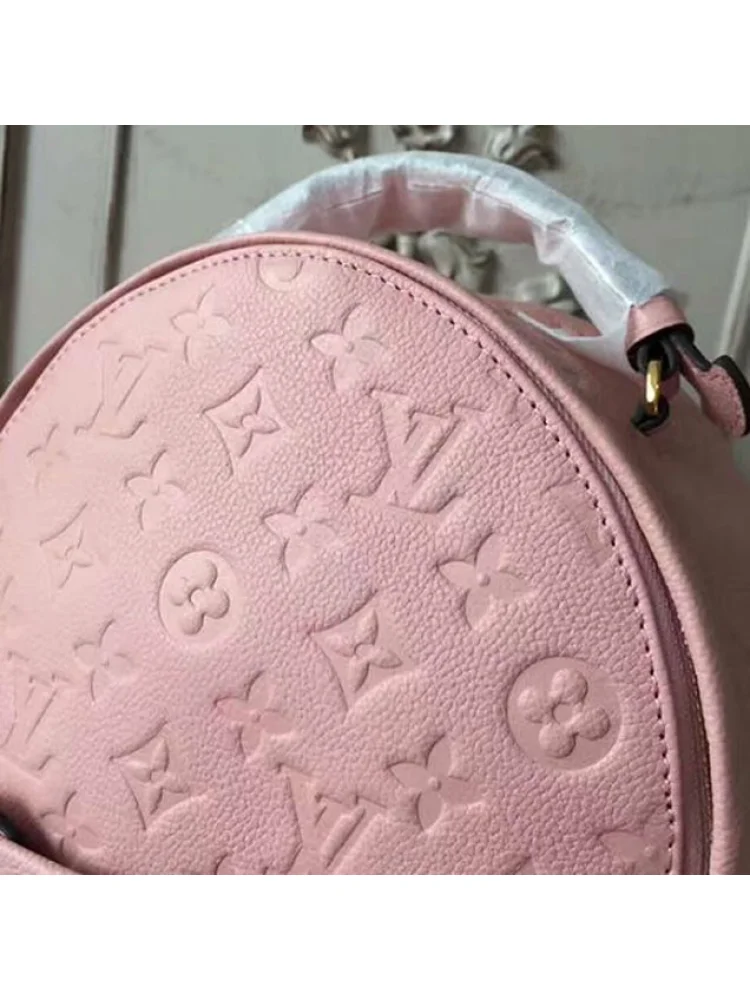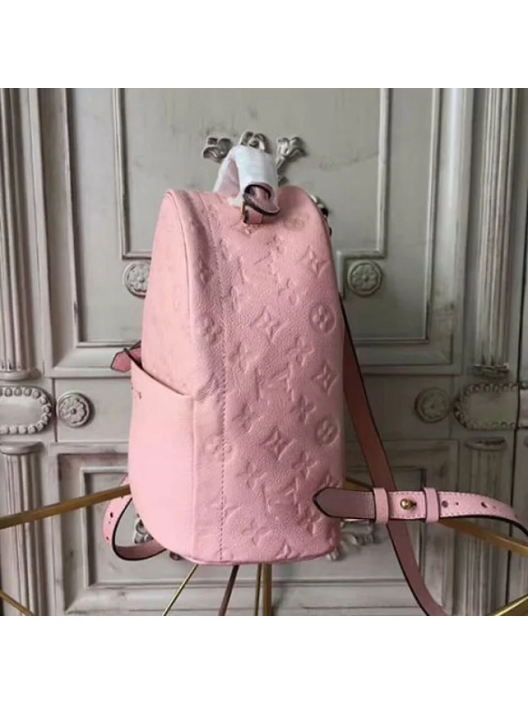 - Изысканный дизайн: рюкзак выполнен в элегантном розовом оттенке с монограммой Louis Vuitton, что придает ему роскошный вид.