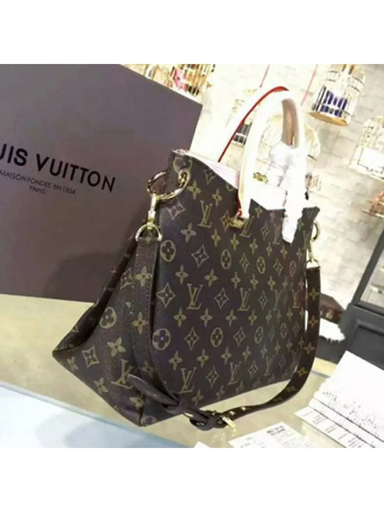 - Изысканный дизайн: сумка имеет классический монограммный узор и кожаные детали, которые придают ей шик и элегантность.