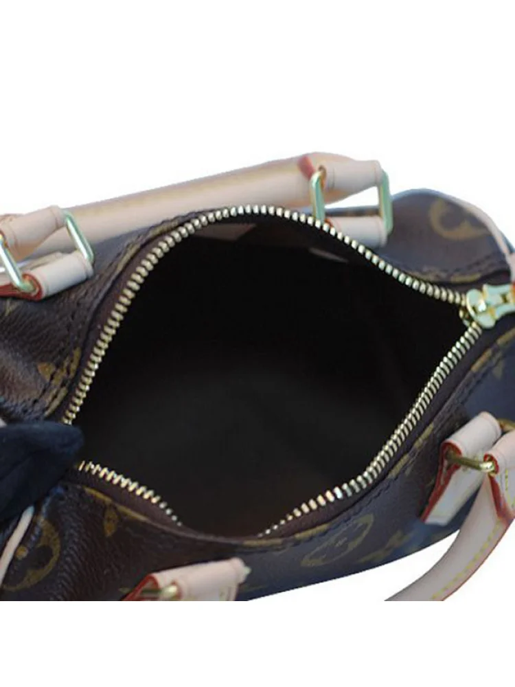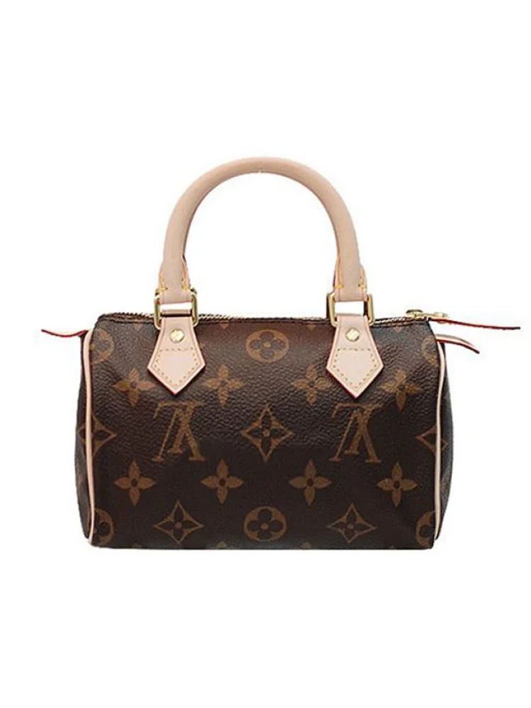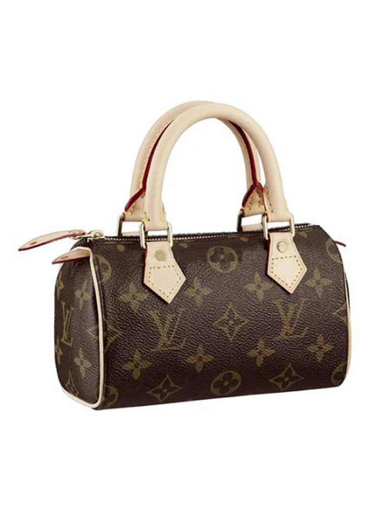 - Monogram canvas, rounded leather handles