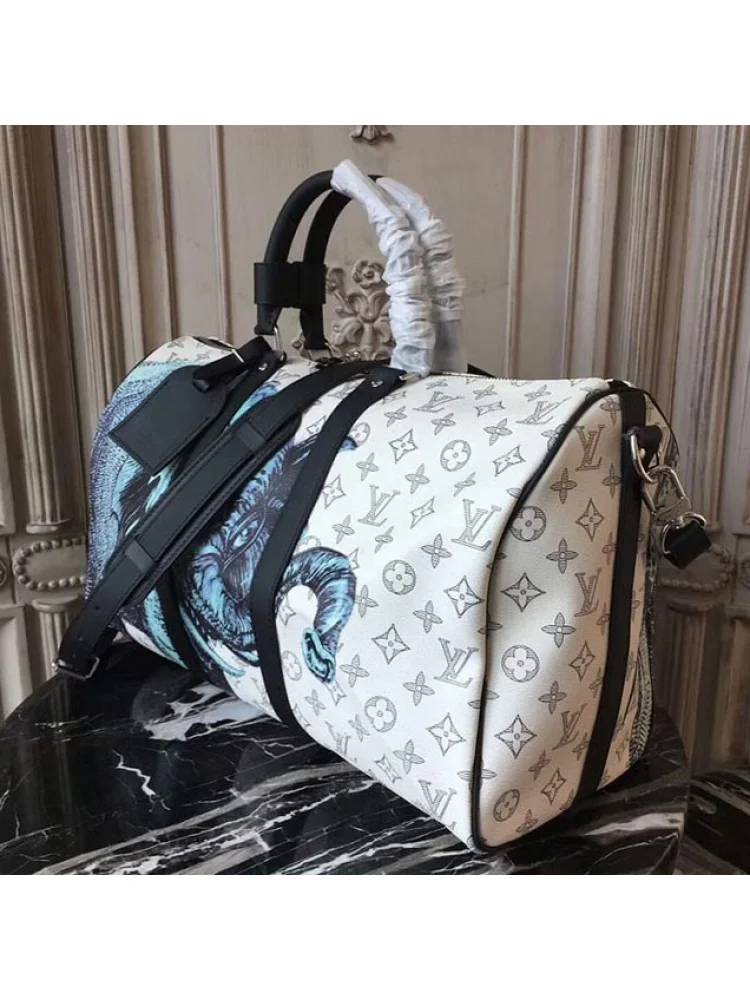 Материалы полностью идентичны оригиналу. Полный комплект. Сумка Louis Vuitton M54130 Keepall 45 Bandouliere Duffel Bag Monogram Canvas "White" – это стильная и функциональная сумка, которая идеально подходит для путешествий и повседневного использования. Она выполнена из прочного монограммного холста с белым оттенком, что придает ей элегантный и модный вид. Преимущества товара: