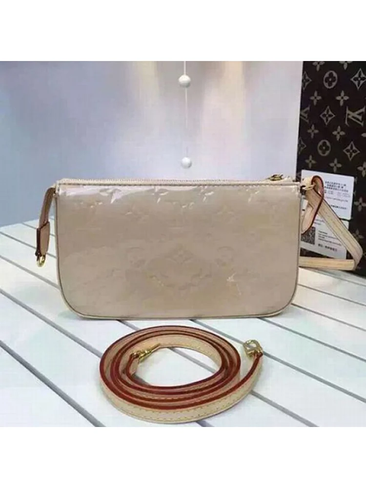 Материалы полностью идентичны оригиналу. Полный комплект. Сумка Louis Vuitton M90196 Pochette Accessoires Monogram Vernis "Beige" - это стильная и элегантная сумка от известного бренда Louis Vuitton. Она выполнена из прочной кожи Monogram Vernis, которая придает ей роскошный вид. Сумка имеет компактный размер, что делает ее идеальным выбором для повседневного использования или особых случаев. Ее удобная ручка позволяет носить ее в руке или на запястье, а также можно использовать съемный ремешок для ношения на плече или через тело. Преимущества товара: