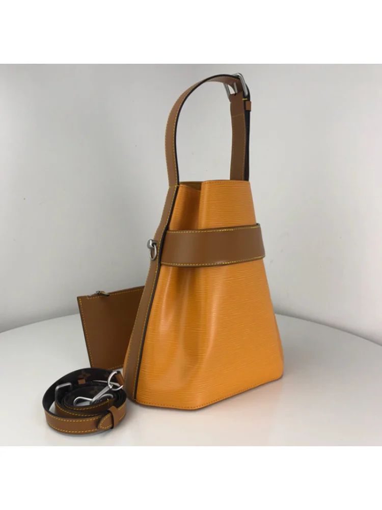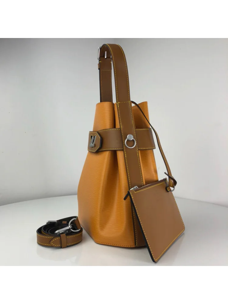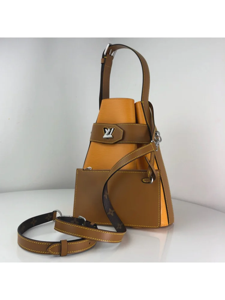 Материалы полностью идентичны оригиналу. Полный комплект. Сумка Louis Vuitton Twist Bucket M52803 Epi Leather Safran Yellow "Brown" - стильная и функциональная сумка, идеально подходящая для повседневного использования. Изготовлена из высококачественной кожи Epi, она обладает прочностью и долговечностью. Преимущества товара: