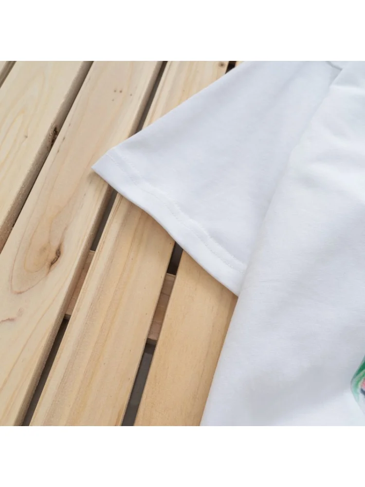 - Яркий дизайн: футболка украшена ярким и стильным принтом, который привлечет внимание и подчеркнет вашу индивидуальность.