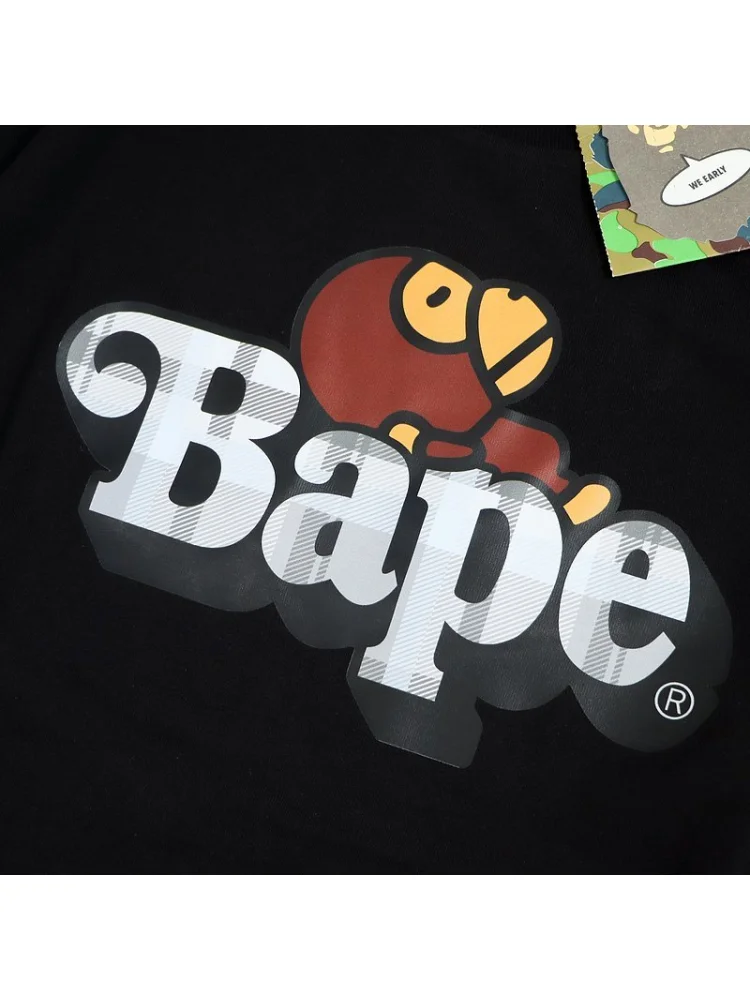 - Стильный дизайн - уникальный принт с обезьянкой Bape и клетчатым логотипом придает футболке оригинальность и привлекательность.