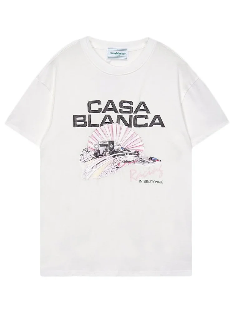 Футболка Casablanca Car On The Bridge Print "White" - стильная и модная футболка с принтом автомобиля на мосту. Она выполнена из высококачественного хлопка, что обеспечивает комфорт и приятное ощущение на коже. Футболка имеет свободный крой и удобную посадку, что позволяет свободно двигаться. Преимущества товара:- Современный дизайн - футболка с оригинальным и стильным принтом