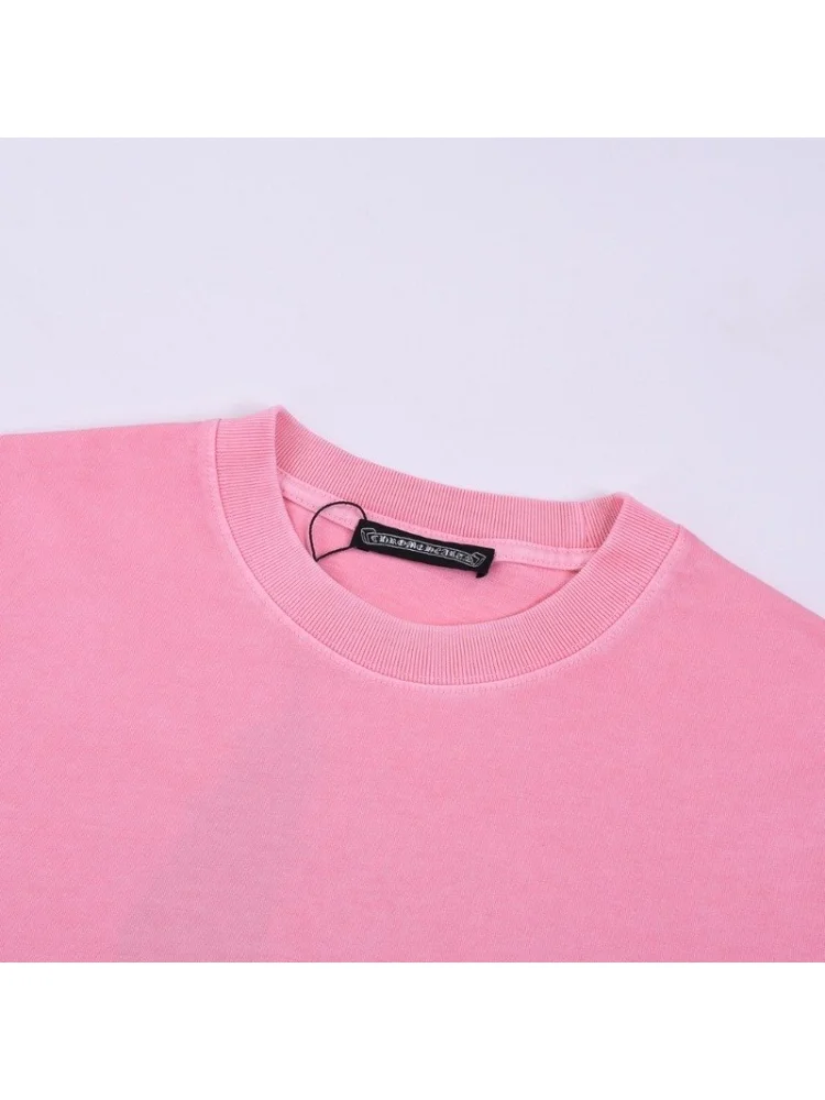 - Изысканный дизайн: футболка с привлекательным розовым логотипом Chrome Hearts на черном фоне выделяется среди других моделей.