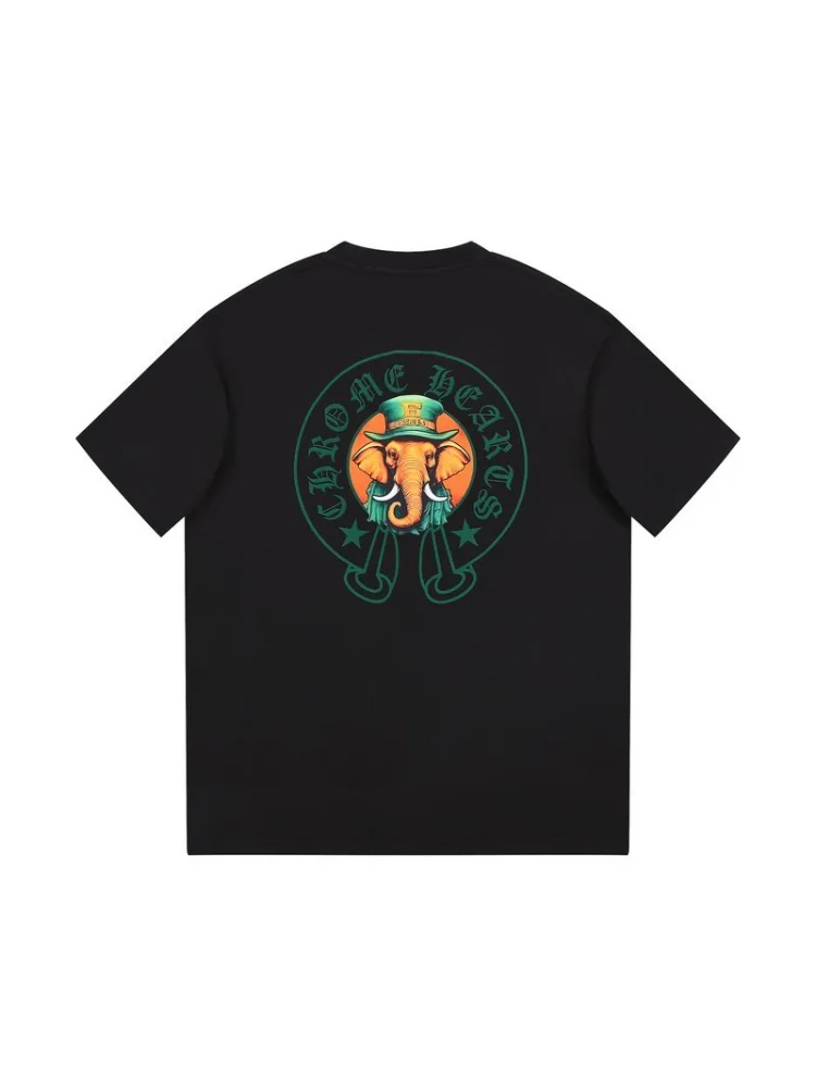 - Привлекательный дизайнерский элемент: изображение слона и логотип Chrome Hearts делает эту футболку уникальной и стильной.