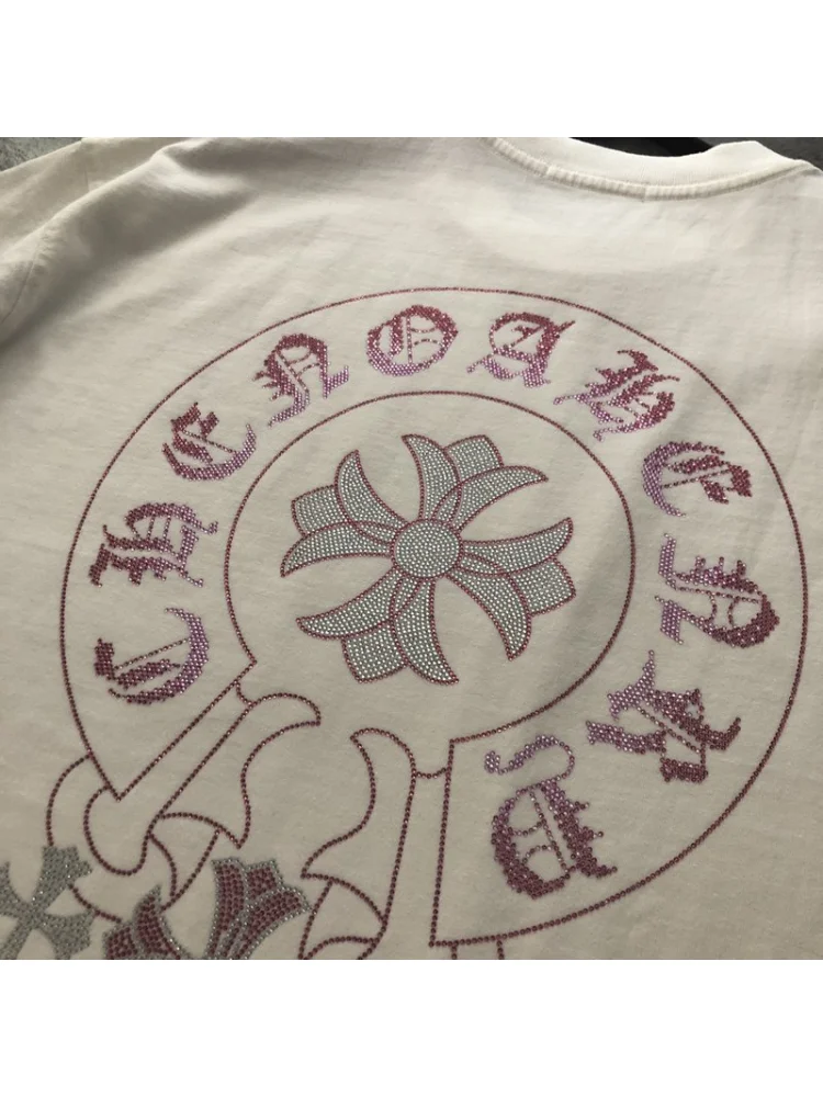 - Яркий алмазный логотип Chrome Hearts - придает футболке уникальности и стильности;