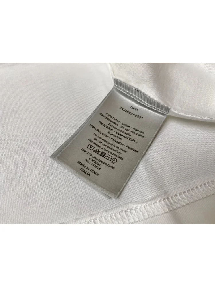 - Узнаваемый бренд: футболка декорирована металлической пластиной с логотипом Dior, что придает ей престижный и роскошный вид.
