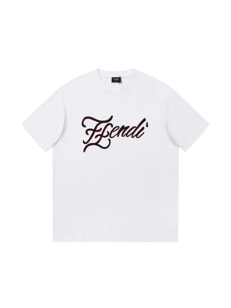 - Современный дизайн: футболка имеет элегантный и стильный дизайн с черным и красным логотипом Fendi на белом фоне.