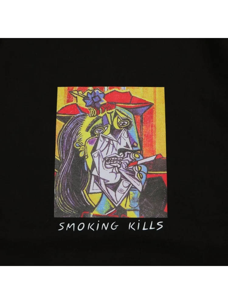 - Стильный дизайн: яркий принт "Smoking Kills" придает футболке особую привлекательность и индивидуальность.