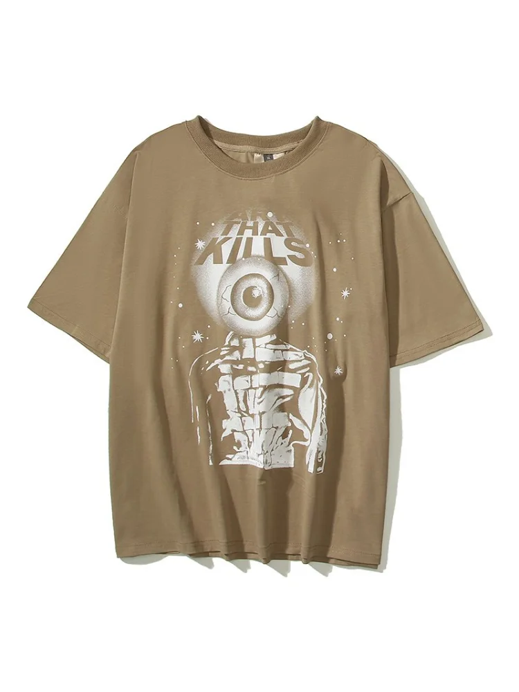 - Стильный дизайн: уникальный графический принт и коричневый цвет делают эту футболку стильной и модной.