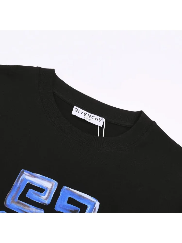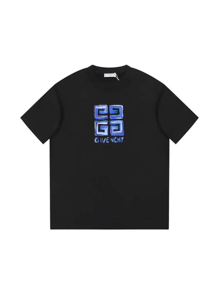 Футболка Givenchy With Blue Text Logo "Black" - стильная и модная футболка с логотипом Givenchy в синем цвете на черном фоне. Идеально подходит для создания элегантного и современного образа. Преимущества товара:- Высокое качество материала, обеспечивающее комфорт и долговечность