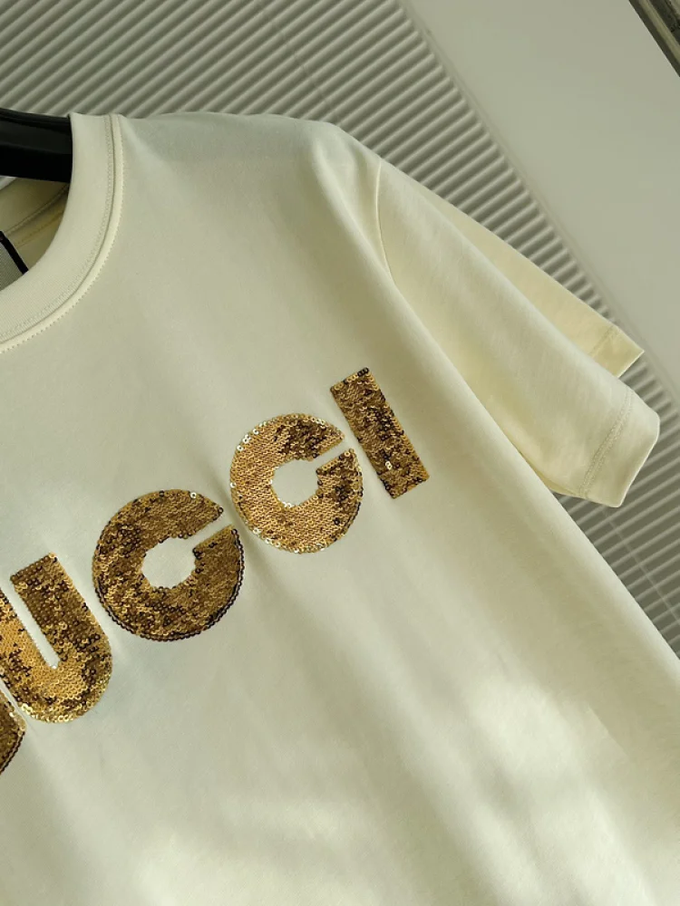 - Элегантный дизайн - футболка украшена пайетками, которые создают эффектный логотип Gucci на передней части;