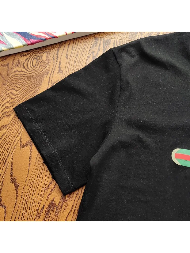 - Элегантный дизайн: футболка имеет стильный принт с логотипом Gucci, который добавляет уникальности и шарма вашему образу.
