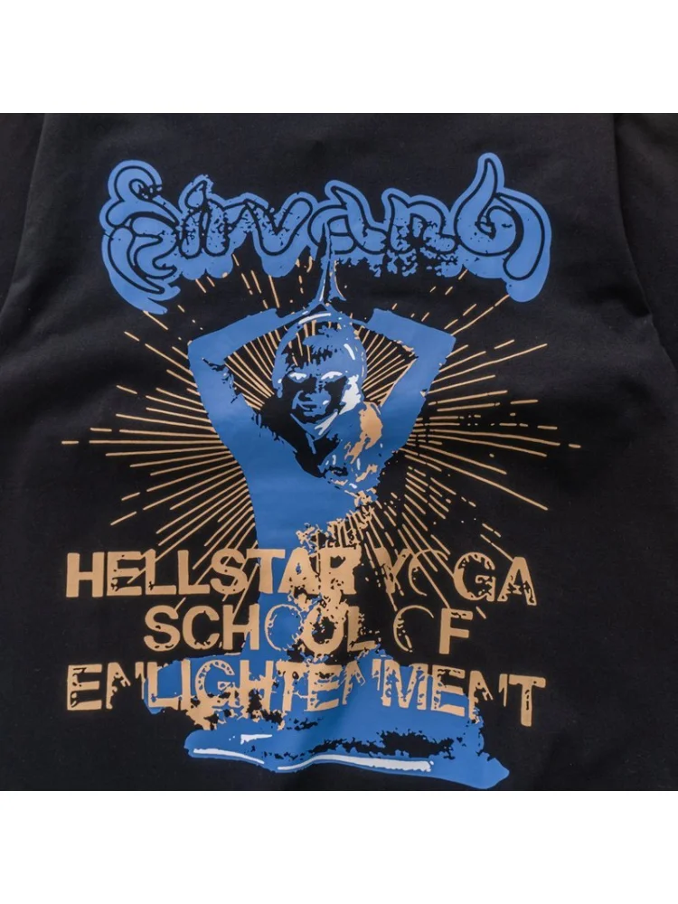 - Стильный дизайн: черный цвет футболки и минималистичный логотип Hellstar Yoga делают ее идеальным выбором для тех, кто ценит элегантность и стиль.