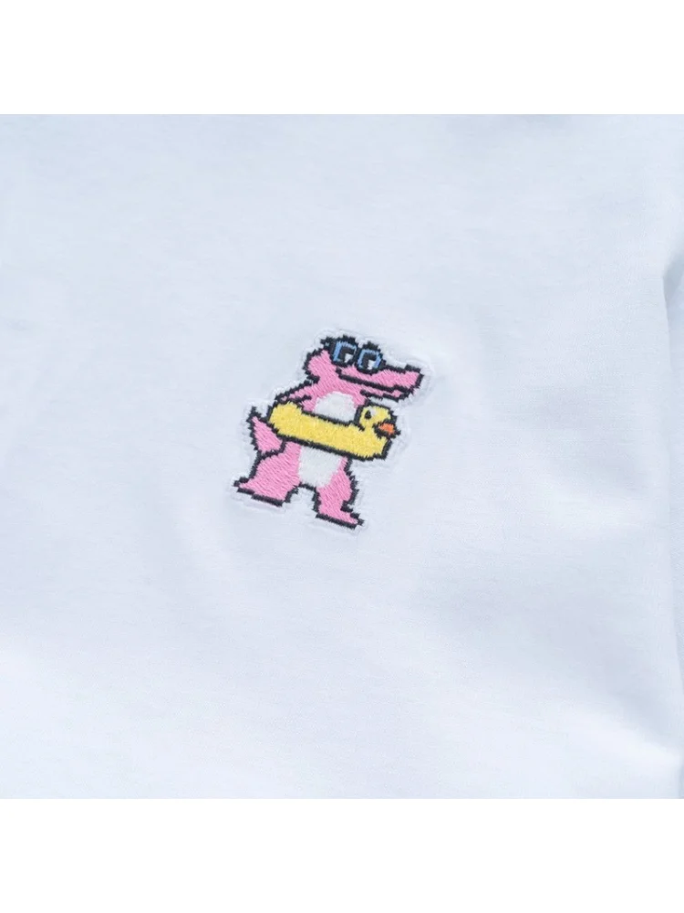 - Стильный дизайн: принт крокодила на груди придает футболке особую привлекательность и делает ее отличным вариантом для повседневного использования.