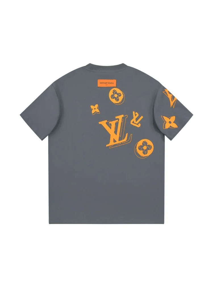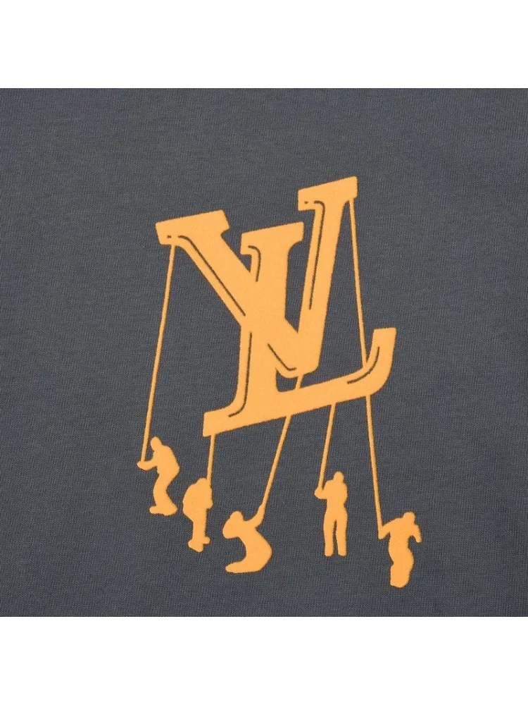 Футболка Louis Vuitton With An Orange Logo With People Hanging From It "Gray" - стильная и уникальная футболка, которая станет ярким акцентом в вашем гардеробе. Она выполнена в сером цвете с оранжевым логотипом Louis Vuitton и изображением людей, висящих на нем. Преимущества товара:- Уникальный дизайн: футболка привлечет внимание своим необычным и запоминающимся принтом.