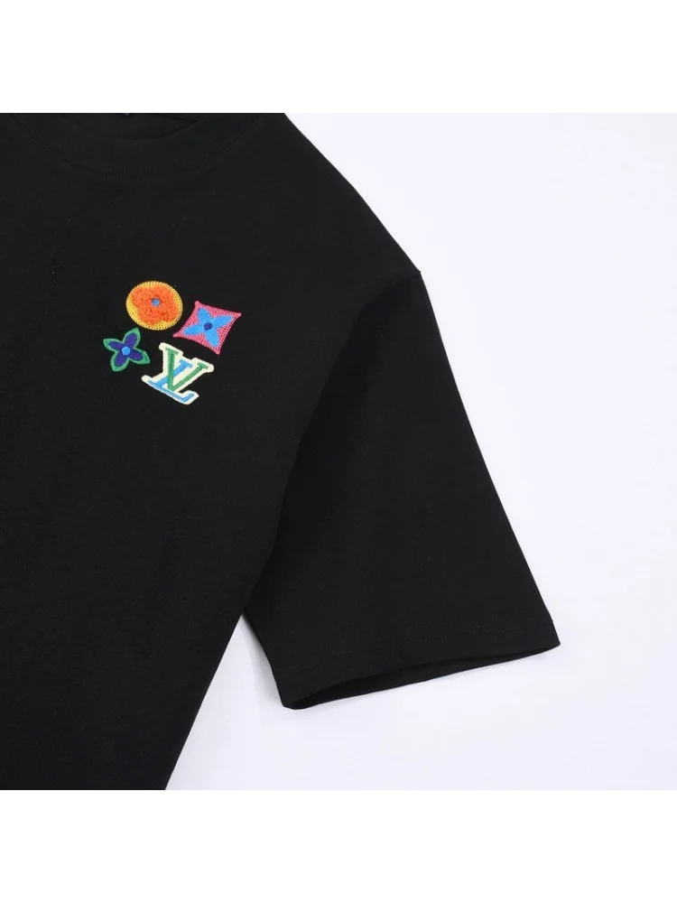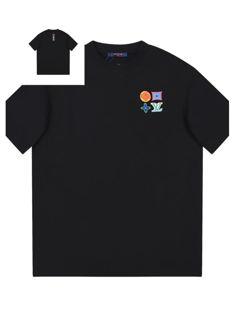 - Стильный дизайн: футболка имеет элегантный черный цвет и украшена фирменными эмблемами Louis Vuitton, что делает ее модной и современной.