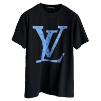- Привлекательный принт: большой синий логотип Louis Vuitton придает футболке особый шарм и статусность.