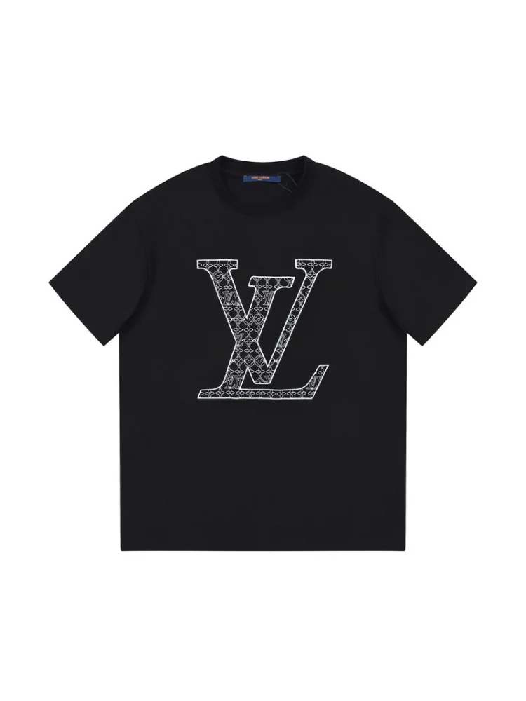 - Стильный дизайн: футболка имеет элегантный дизайн с логотипом Louis Vuitton и брендовыми узорами, что придает ей роскошный вид.