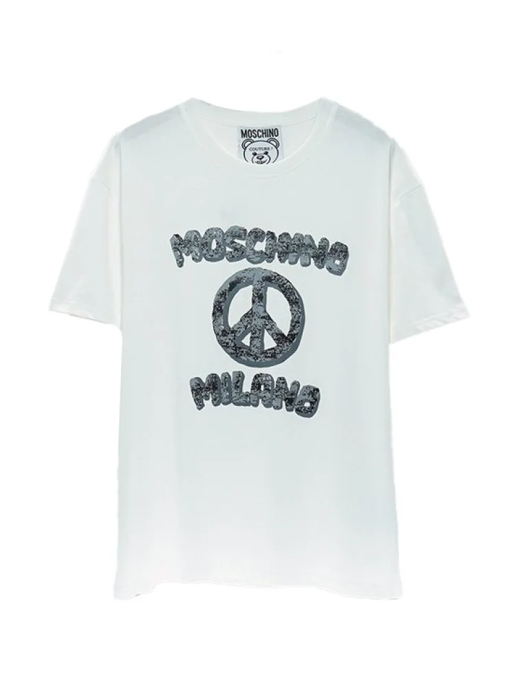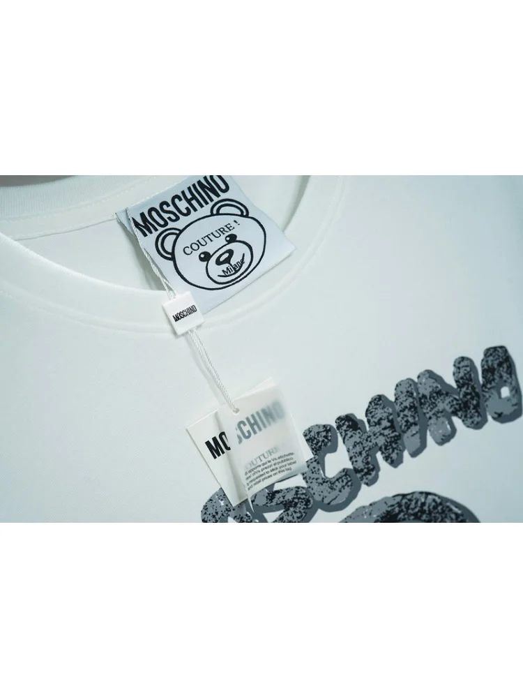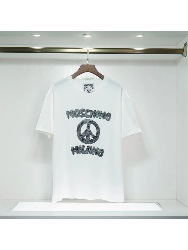 - Стильный дизайн: футболка с логотипом Moschino выглядит модно и современно.