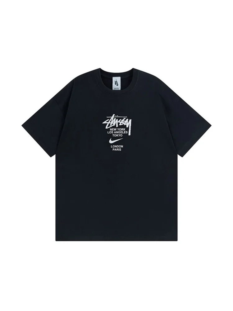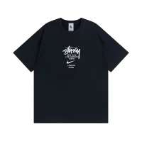 - Стильный дизайн: Черный цвет и логотипы Nike и Stussy придают футболке современный и модный вид.