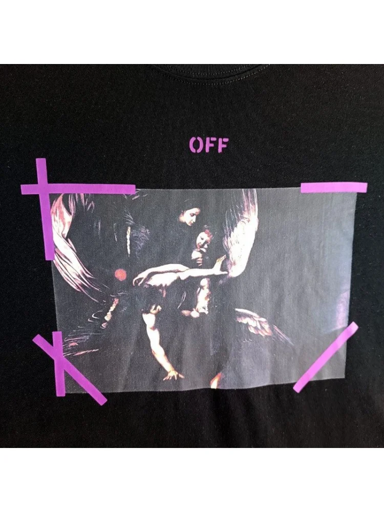 - Современный дизайн - футболка в стиле Off White с принтом ангелов является актуальным и модным элементом гардероба.