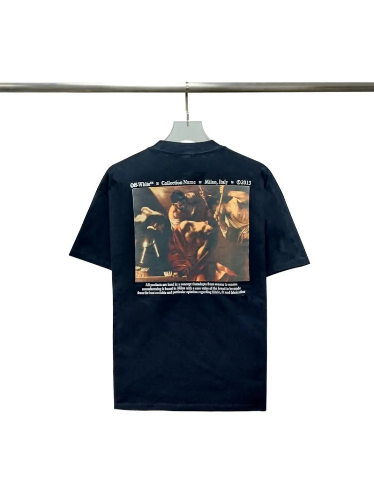 - Современный дизайн - футболка выполнена в актуальном стиле Off White, что позволяет выглядеть модно и стильно.