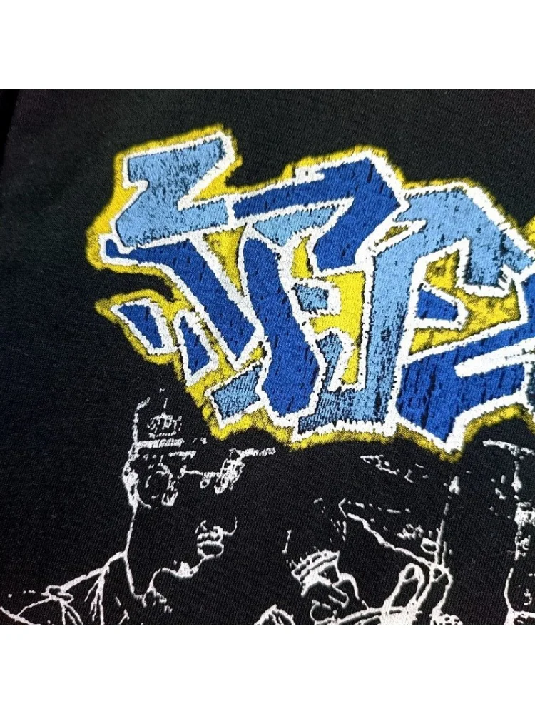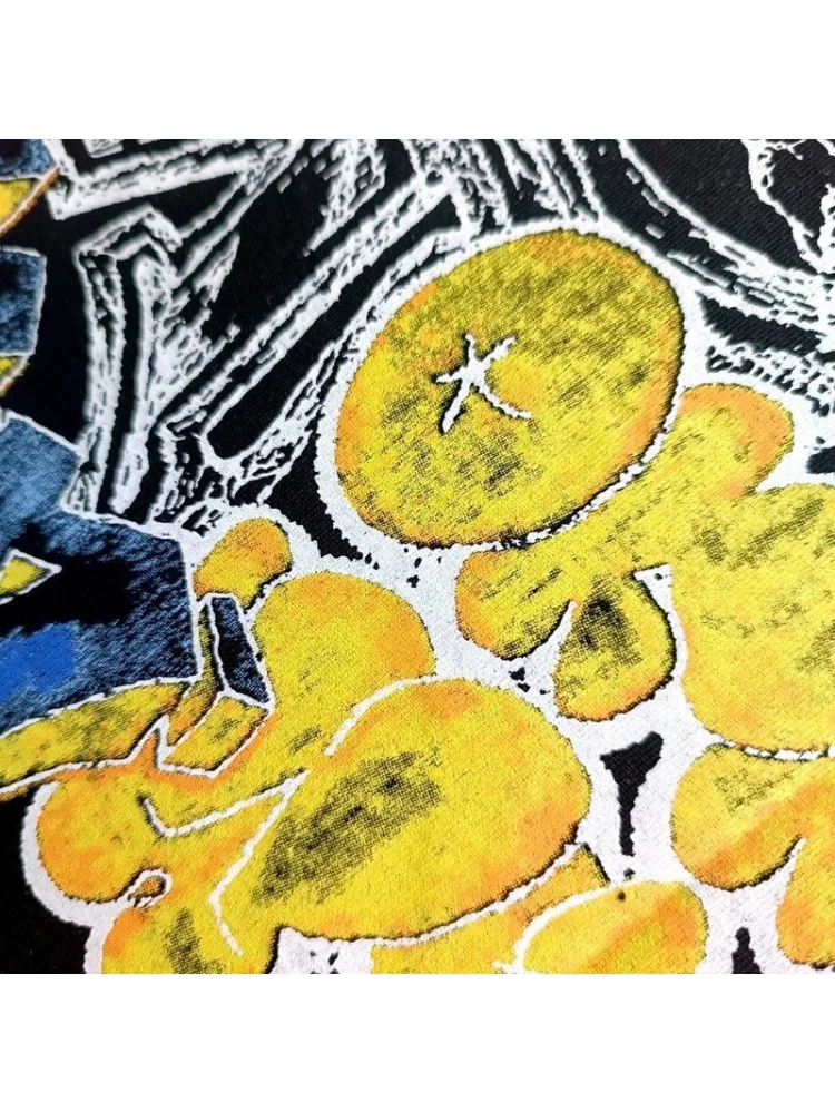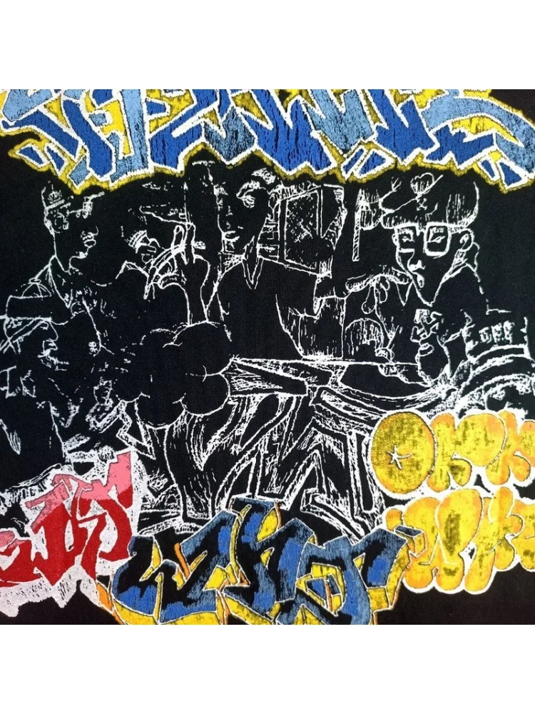 - Яркий дизайн: футболка украшена яркими граффити, которые придают ей стильный и современный вид.