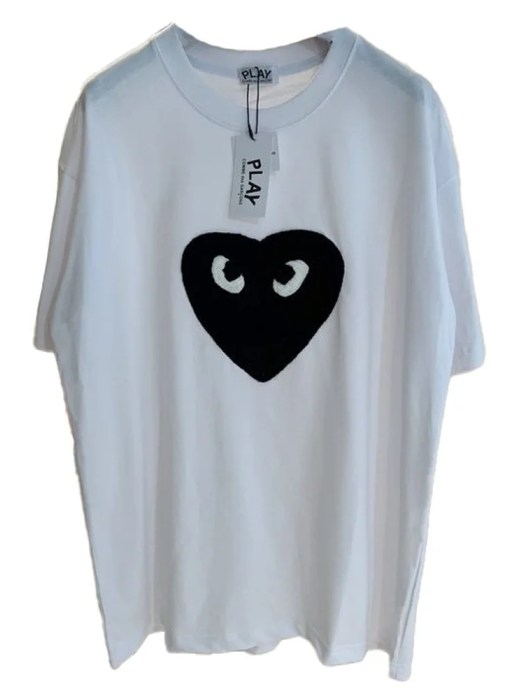 - Уникальный дизайн: футболка имеет стильный дизайн с изображением сердца и логотипом Comme des Garcons Play, что придает ей особую привлекательность.