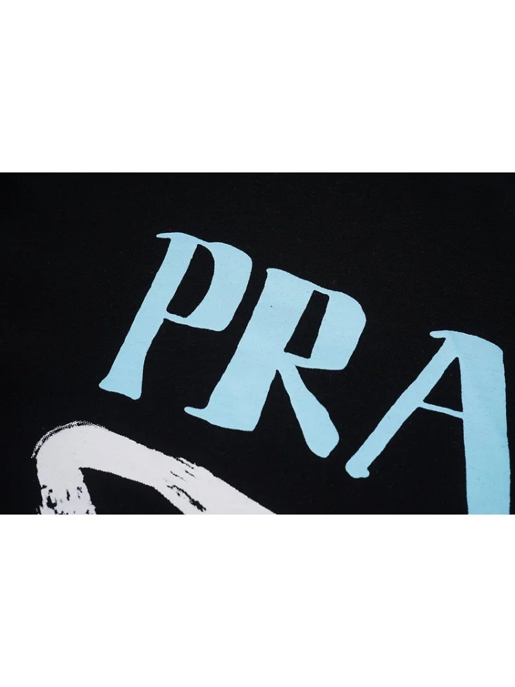 - Модный дизайн: черный цвет и стильный принт с логотипом Prada придают футболке современный и элегантный вид.