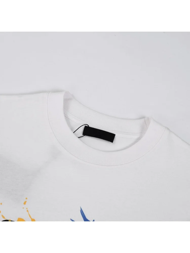 - Современный дизайн: футболка украшена яркими красками, создавая уникальный и модный образ.