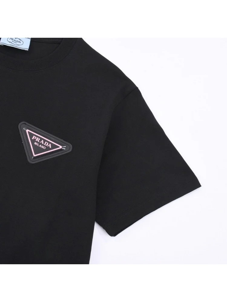 - Современный дизайн: футболка имеет элегантный черный цвет и украшена логотипом Prada, что придает ей стильный и роскошный вид.