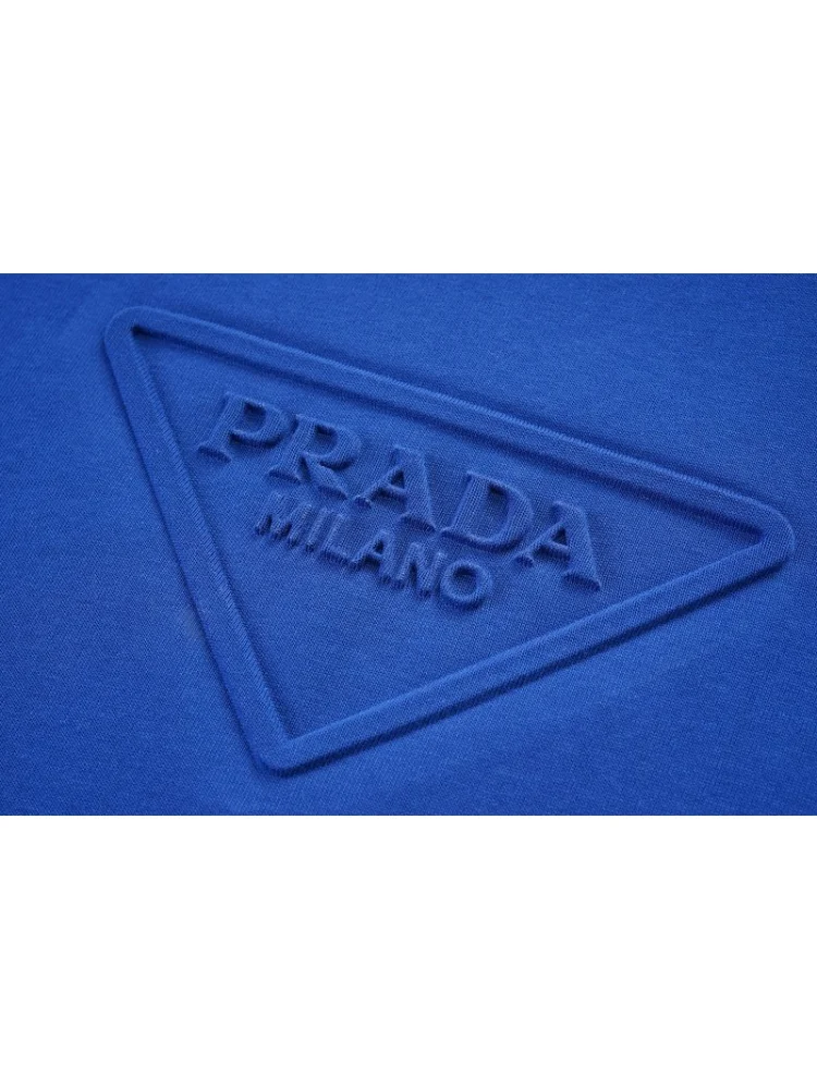 Футболка Prada With The Brand Logo Pressed Out "Blue" - стильная и модная футболка от известного бренда Prada. Она выполнена в синем цвете с выдавленным логотипом бренда на груди. Преимущества товара:-