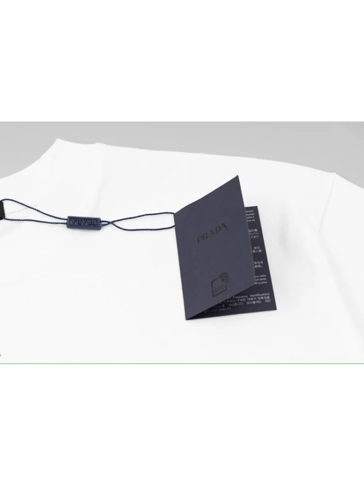 - Принт логотипа Prada - наличие принта с логотипом Prada придает футболке статусный и роскошный вид, подчеркивая вашу индивидуальность.