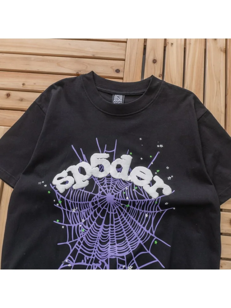 - Стильный дизайн: оригинальный дизайн с паутиной и логотипом Sp5der придает футболке уникальность и привлекательность.