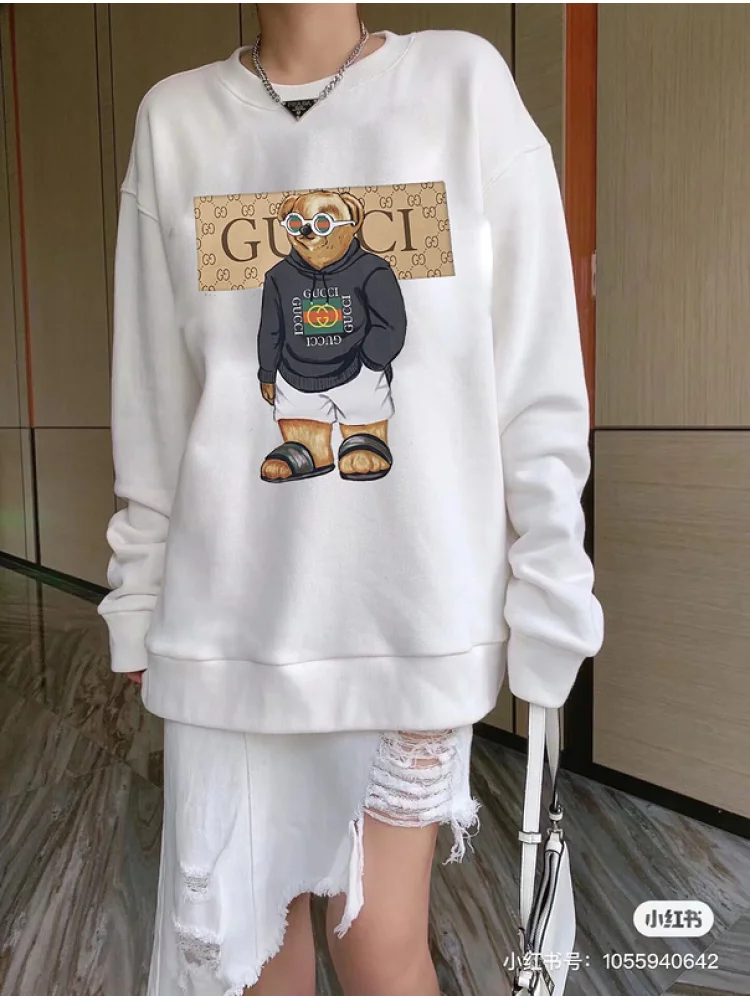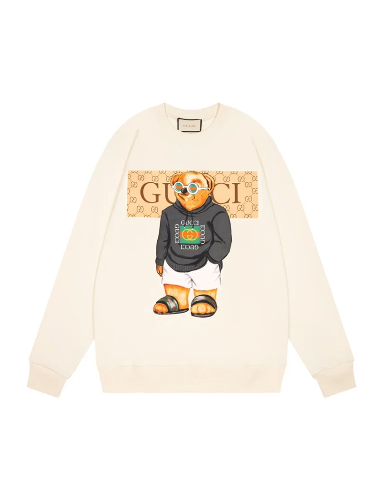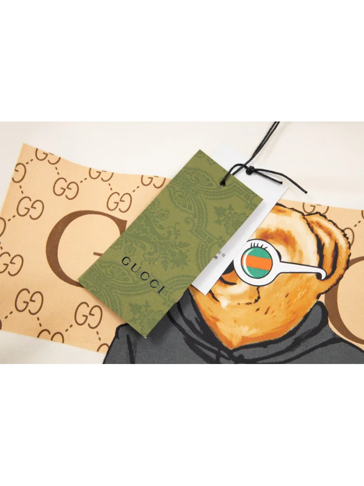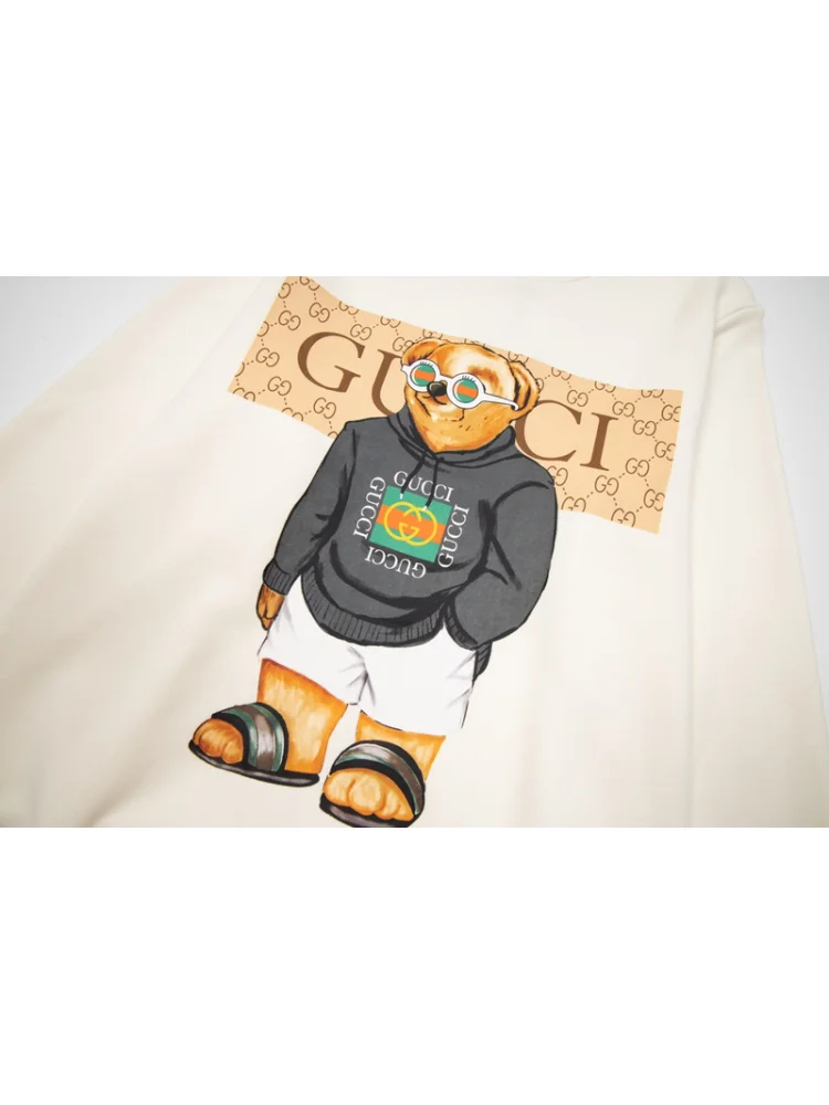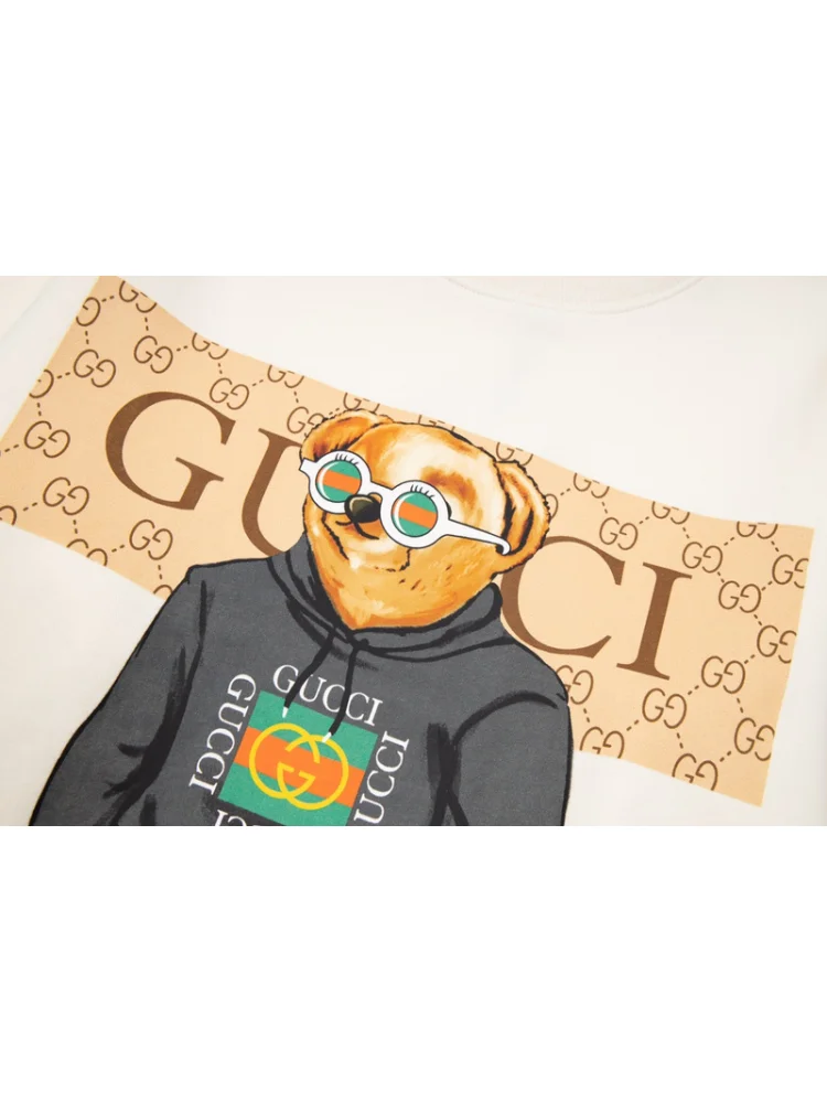 - Стильный дизайн: уникальный принт с медведем в одежде Gucci придает футболке оригинальность и привлекательность.
