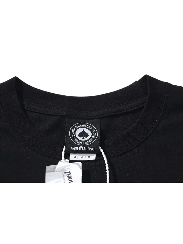 2. Стильный дизайн: Уникальный дизайн с логотипом Thrasher Magazine и огненным принтом на черном фоне придает этой футболке особый шарм и делает ее отличным дополнением к вашему гардеробу.