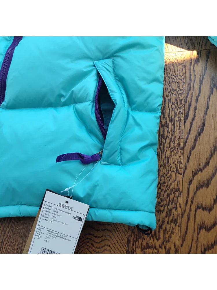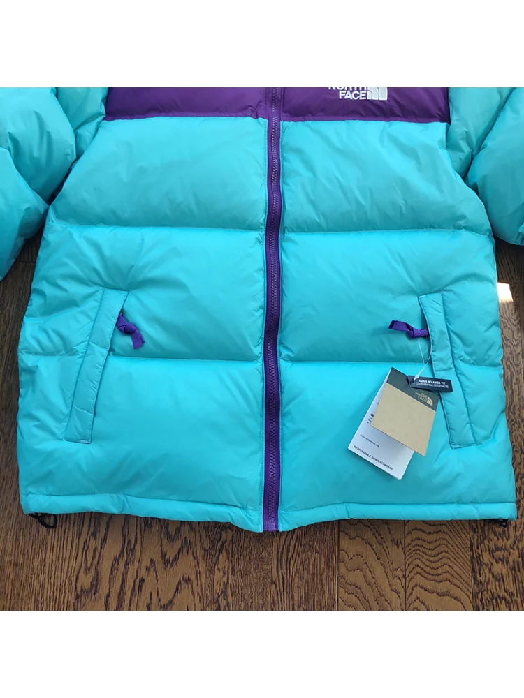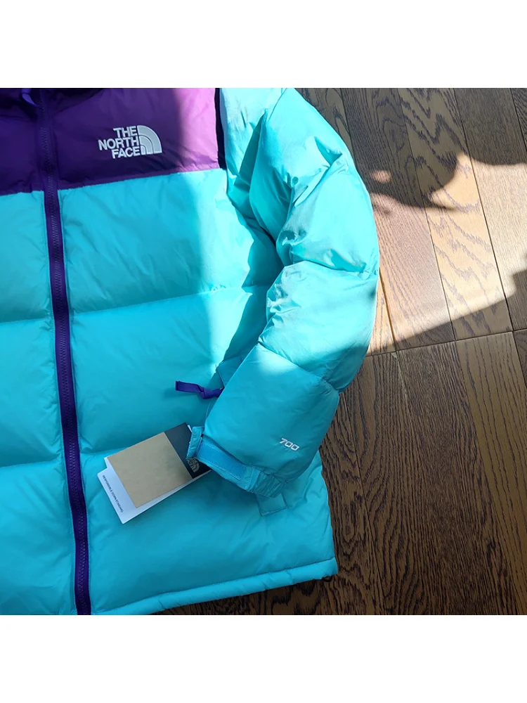 - Стильный дизайн: синий цвет и небольшой логотип The North Face придают пуховику современный и модный вид.