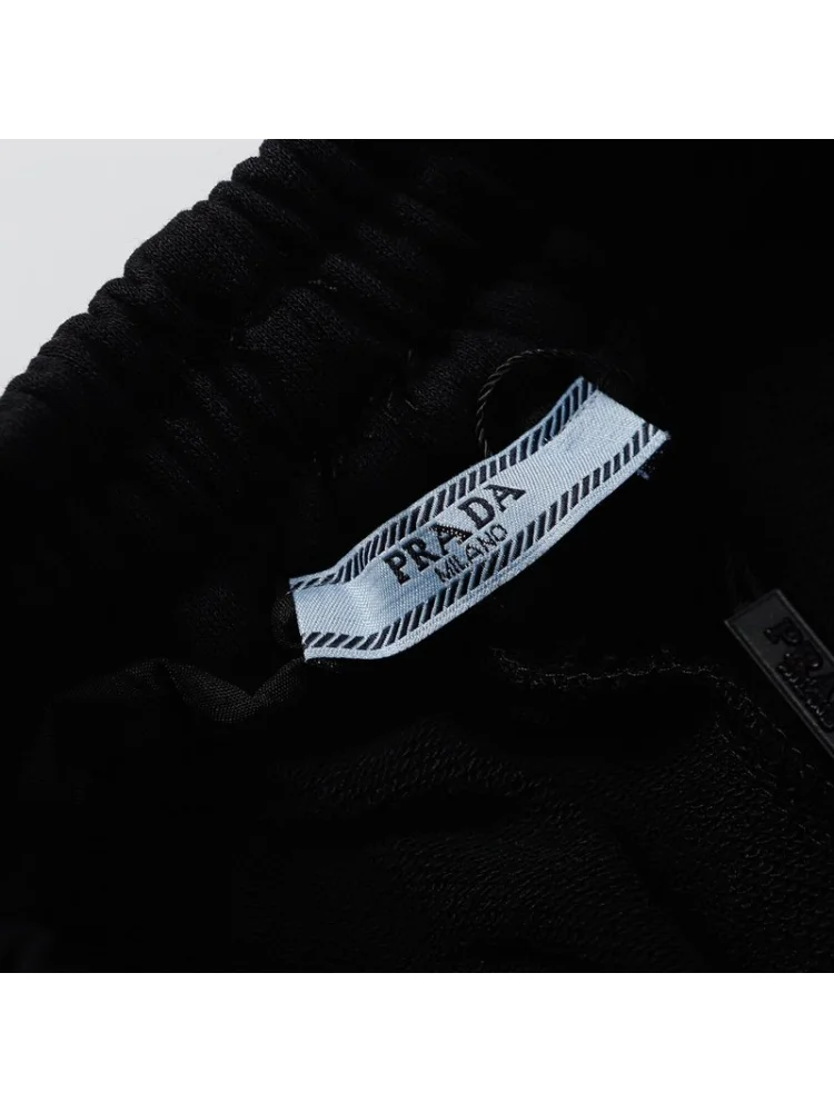- Модный дизайн: шорты декорированы розовой логотипной пластиной Prada, что придает им стильный и элегантный вид.