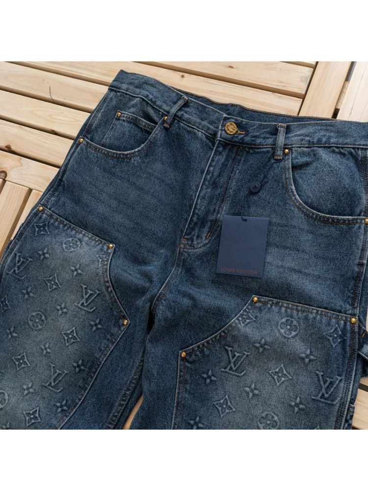 - Изысканный дизайн: джинсы с уникальными логотипами Louis Vuitton добавят элегантности и роскоши вашему образу.