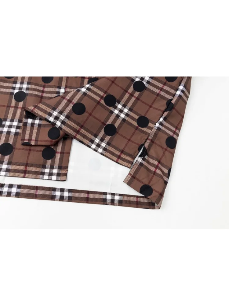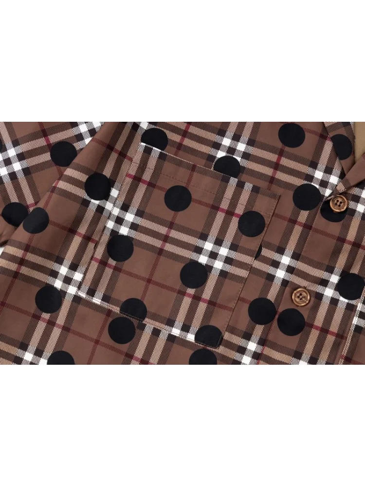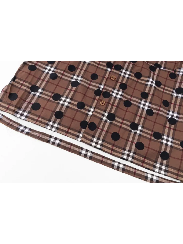 - Стильный дизайн: узор в виде клетки с черными точками придает рубашке особый шарм и делает ее модной и современной.