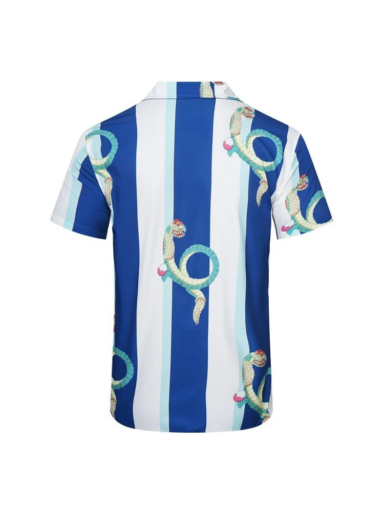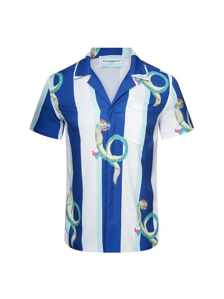 Рубашка Casablanca Short Sleeves Stripes Snakes «Blue White»