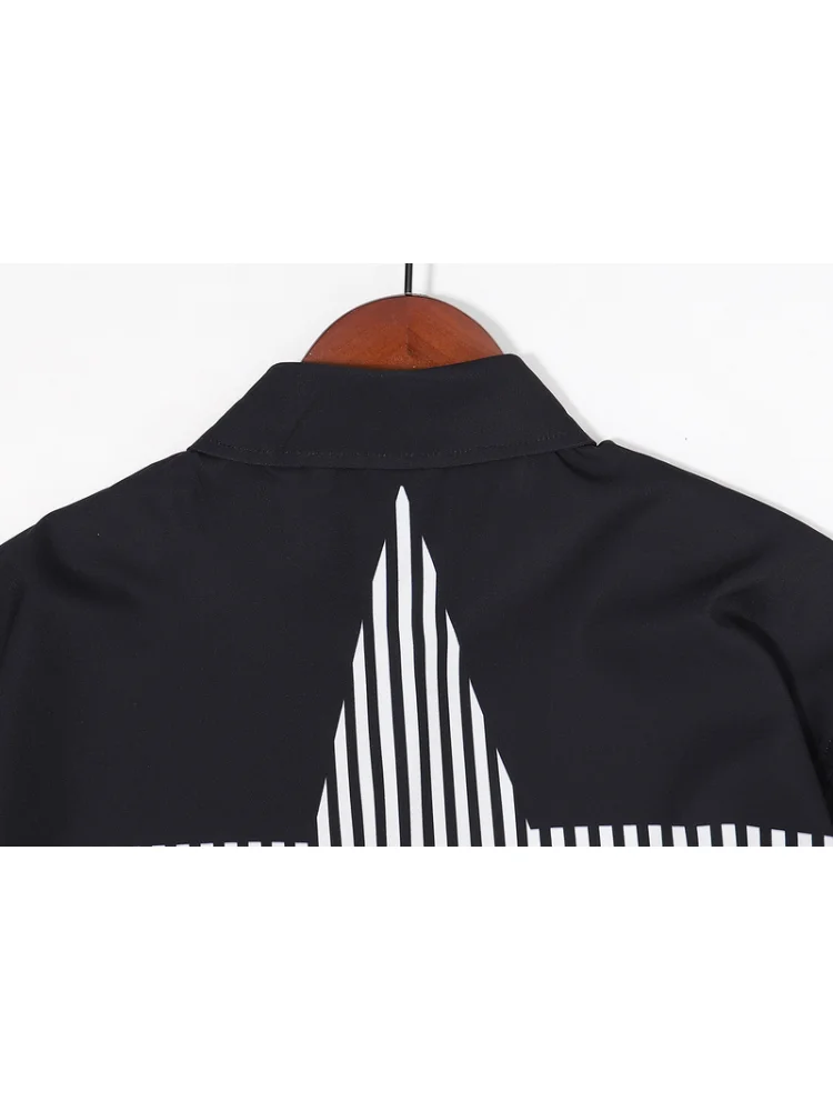 - Элегантный дизайн: рубашка имеет стильный полосатый принт с звездами, придающий образу уникальность и индивидуальность.