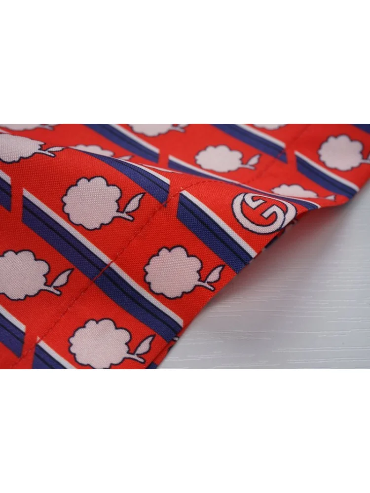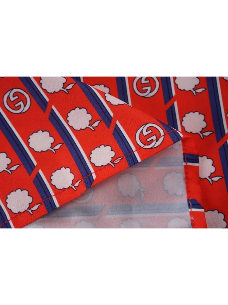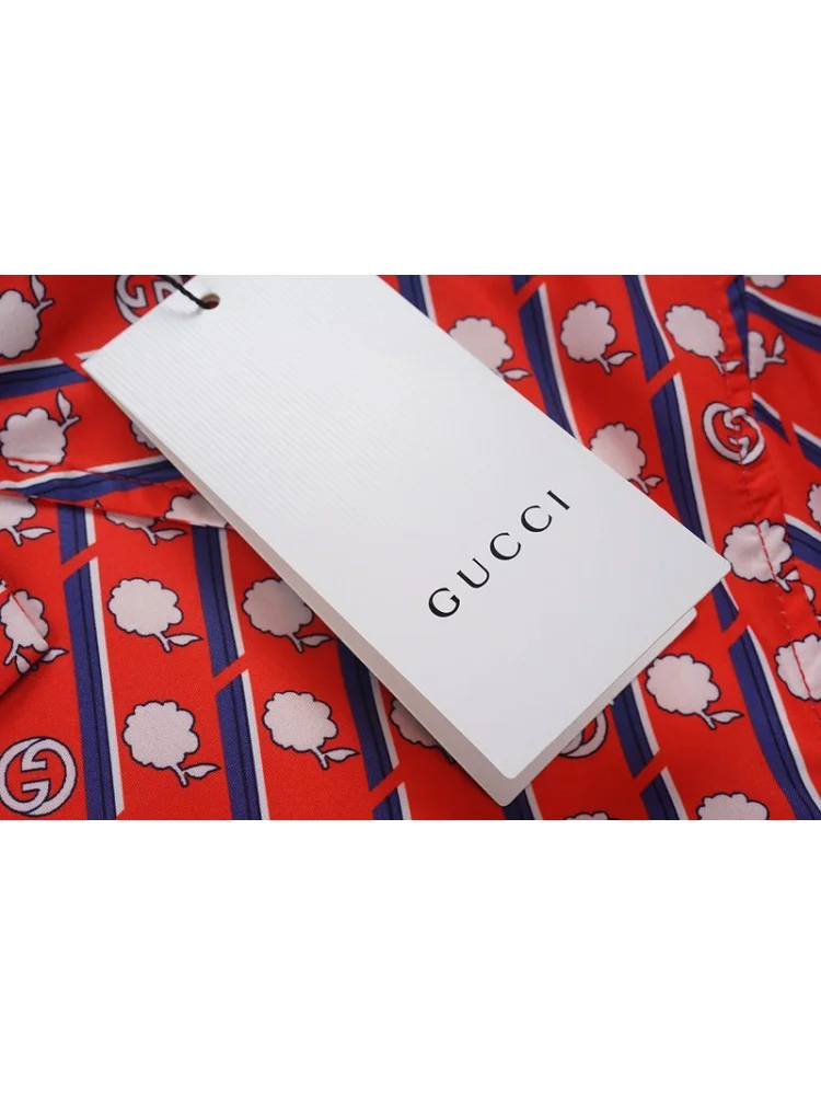Рубашка Gucci Flowers And Vertical Stripes "Red" - это стильная и элегантная рубашка, которая станет отличным дополнением к вашему гардеробу. Она выполнена в красном цвете с принтом цветов и вертикальными полосами, что придает ей особый шарм и уникальность. Преимущества товара:- Высокое качество материала