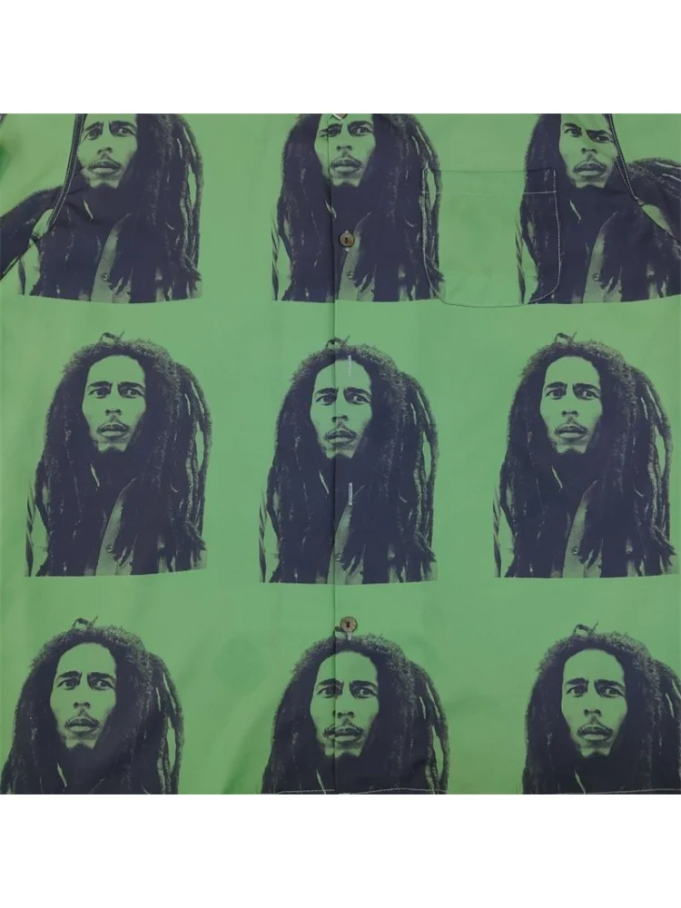 - Элегантный дизайн: рубашка с принтом музыканта в сочетании с зеленым цветом создает уникальный и стильный образ.
