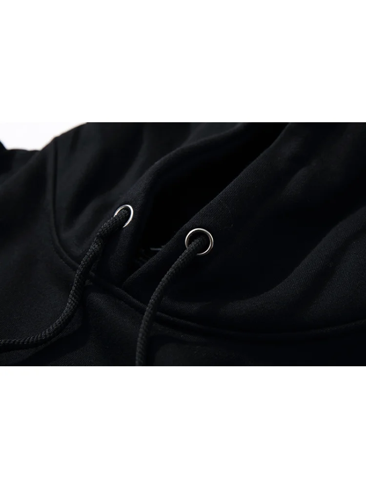 - Стильный дизайн: черный цвет с контрастными белыми деталями придает этому худи современный и элегантный вид.